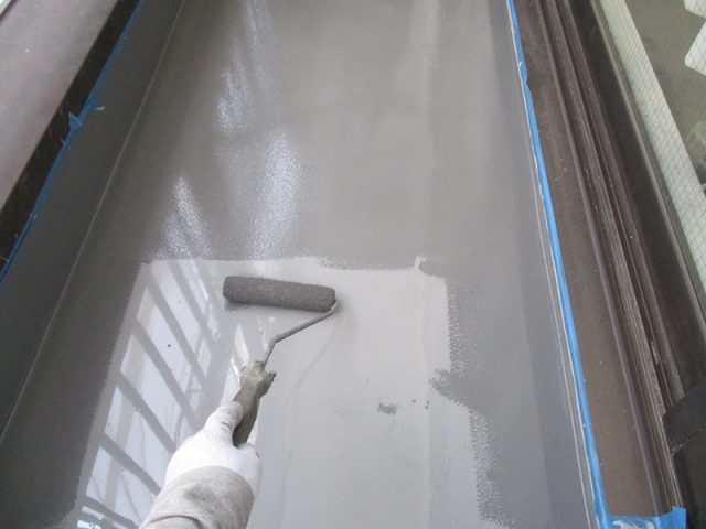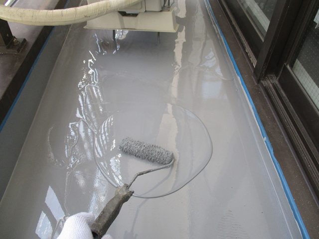 ウレタン塗料を下地に塗ることで、防水性の高い膜を作っていきます。
